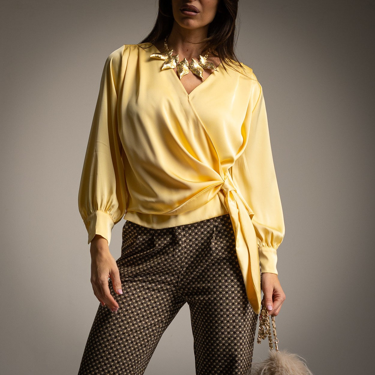 Cette chemise croisée se distingue par son design moderne et élégant.