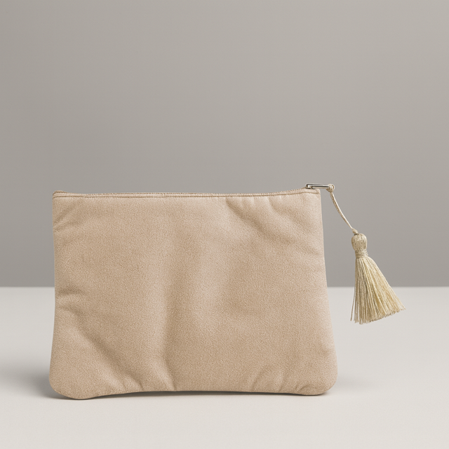 Une pochette beigne format 21x16 cm, avec une texture douce.