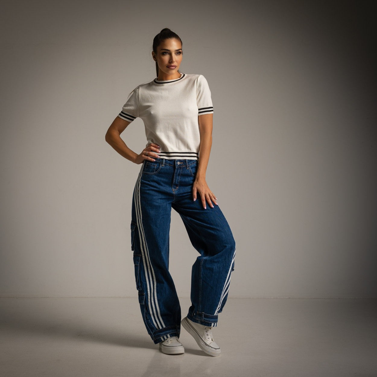 Léger et polyvalent, il se marie facilement avec un pantalon, une jupe ou un short pour un look chic et décontracté.