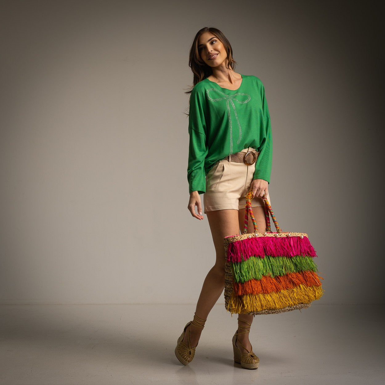 T-SHIRT AVEC NŒUD EN STRASS VERT